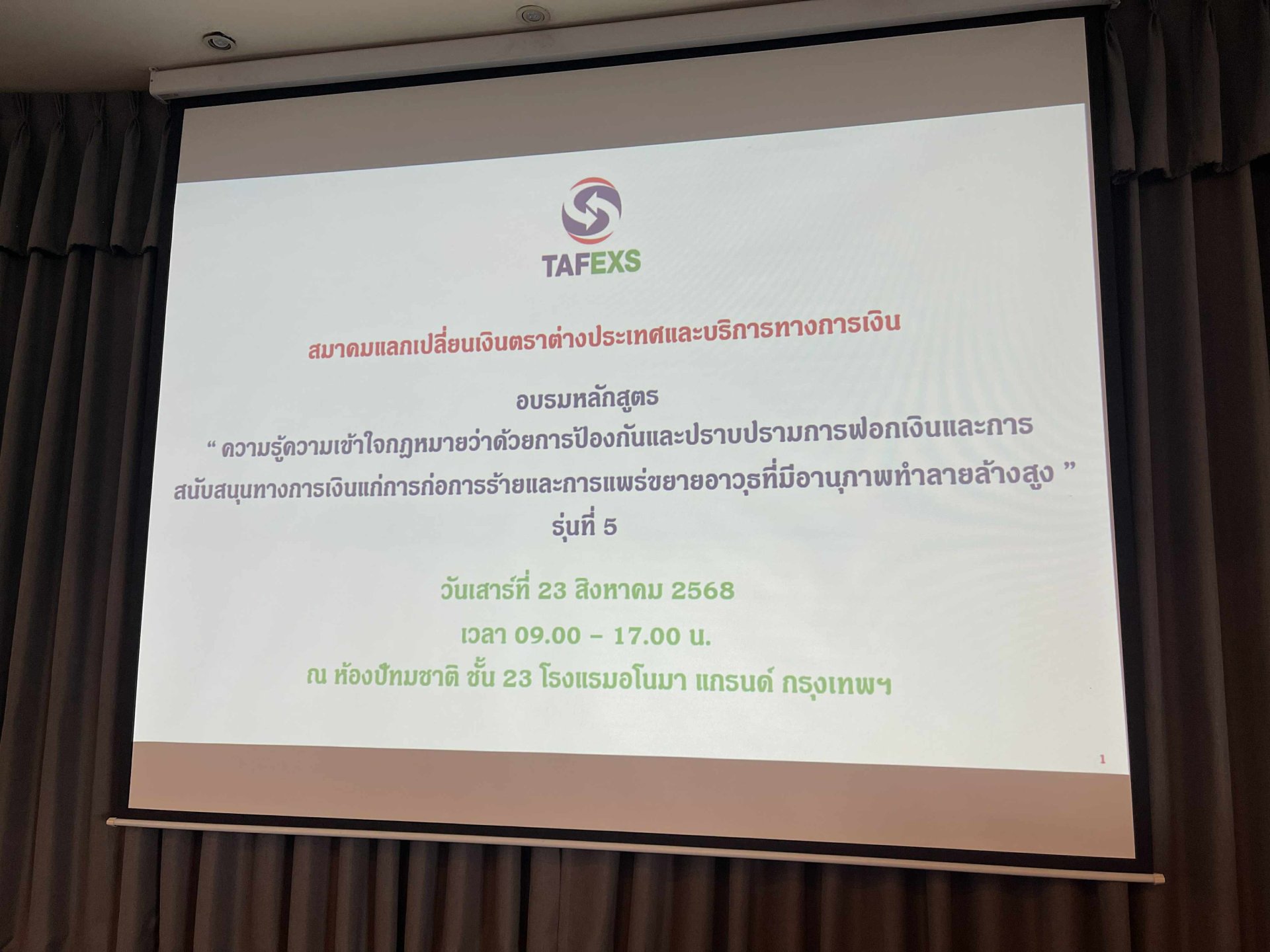 สมาคมแลกเปลี่ยนเงินตราต่างประเทศและบริการทางการเงินเปิดรับสมัครอบรมหลักสูตร ความรู้ความเข้าใจเกี่ยวกับกฎหมายว่าด้วยการป้องกันและปราบปรามการฟอกเงิน และการสนับสนุนทางการเงินแก่การก่อการร้ายและการแพร่ขยายอาวุธที่มีอานุภาพทำลายล้างสูง (แบบ Class room) รุ่นที่ ๕